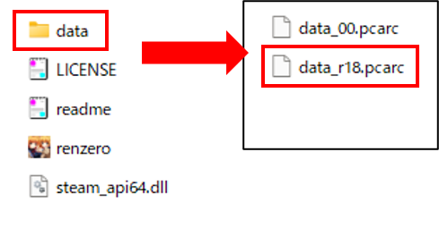 「data_r18.pcarc」がゲームに反映されているかの判断は、